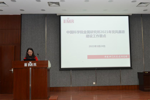 紀(jì)檢與審計處副處長(主持工作)王殿珊介紹了金屬所2021年黨風(fēng)廉政建設(shè)工作要點,結(jié)合院相關(guān)工作部署要求,詳細(xì)介紹了研究所年度重點工作,并對全面從嚴(yán)治黨的形勢和要求、支部書記黨風(fēng)廉政建設(shè)責(zé)任內(nèi)容等進行了宣講。