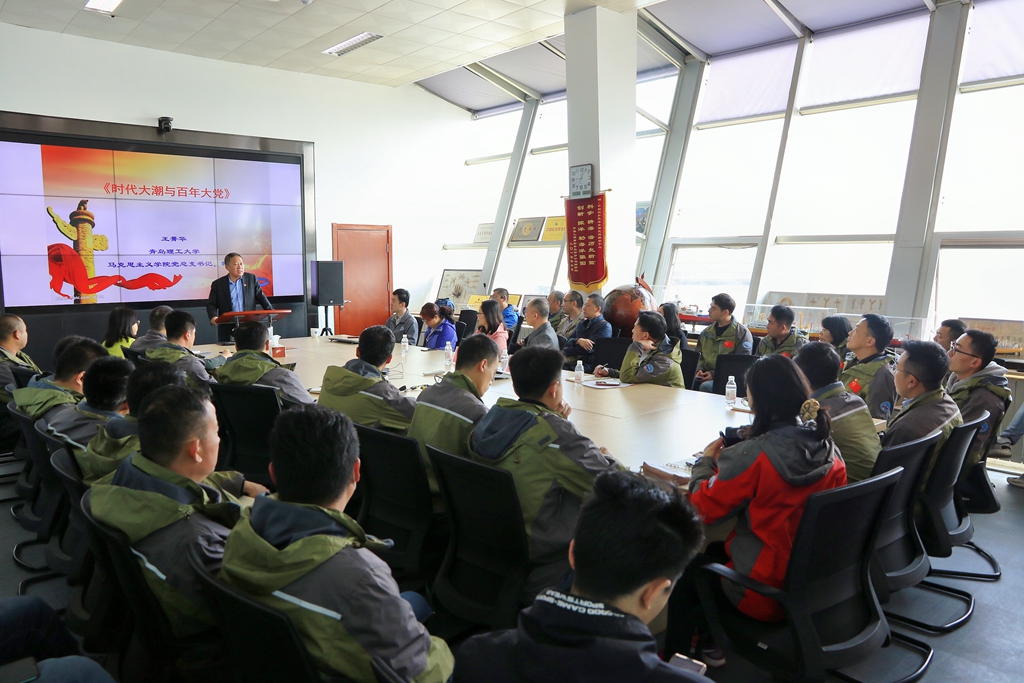 4月9日,科考船運(yùn)管中心黨支部和管理一支部在海洋所西海岸園區(qū)舉行“學(xué)習(xí)黨史守初心,汲取力量擔(dān)使命”主題黨日聯(lián)建活動(dòng)?;顒?dòng)邀請(qǐng)了青島理工大學(xué)馬克思主義學(xué)院黨總支書記王菁華同志為全體黨員上專題黨課。黨委委員、運(yùn)管中心黨支部書記李雷溪同志主持會(huì)議。
