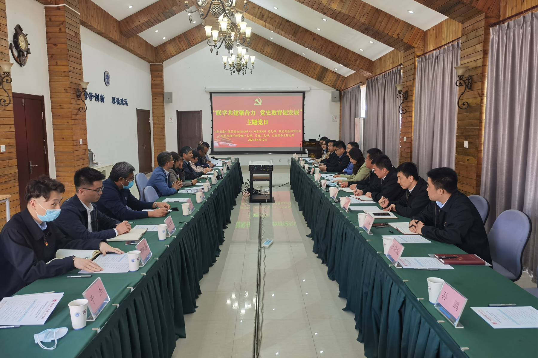 為深入開(kāi)展黨史學(xué)習(xí)教育,增強(qiáng)基層黨組織活力,發(fā)揮黨員的先鋒模范作用,4月19日,海洋所管理一、二黨支部和公共服務(wù)支撐與學(xué)會(huì)黨支部,聯(lián)合山東省港口集團(tuán)黨委組織部(人力資源部)黨支部、投資發(fā)展部黨支部開(kāi)展“聯(lián)學(xué)共建聚合力 黨史教育促發(fā)展”主題黨日暨迎接建黨100周年主題聯(lián)建活動(dòng)。山東省港口集團(tuán)工會(huì)主席/黨委組織部(人力資源部)部長(zhǎng)高亞、投資發(fā)展部部長(zhǎng)呂曉麗,海洋所人力資源總監(jiān)程培周、黨委委員/運(yùn)管中心支部書(shū)記李雷溪、黨群工作處處長(zhǎng)展翔天、管理二支部書(shū)記孟慶勇、工會(huì)常務(wù)副主席徐純青等40余名黨員參加共建活動(dòng)。