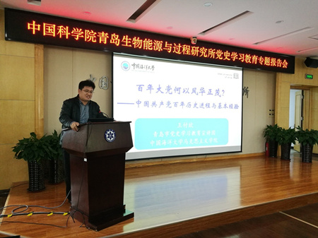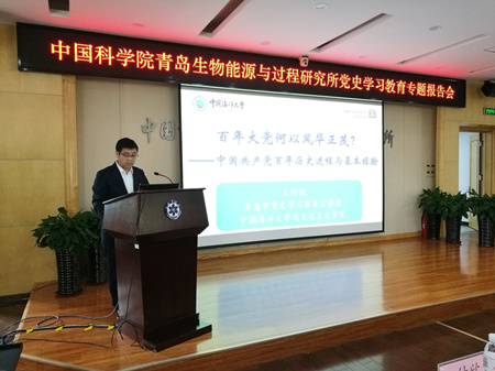 4月27日下午,青島能源所召開黨史學(xué)習(xí)教育專題報(bào)告會(huì)。研究所全體黨員、申請(qǐng)入黨人員、共青團(tuán)員和感興趣的職工、學(xué)生共300余人在現(xiàn)場(chǎng)或通過(guò)視頻形式參加了會(huì)議。會(huì)議由紀(jì)委書記李明主持。