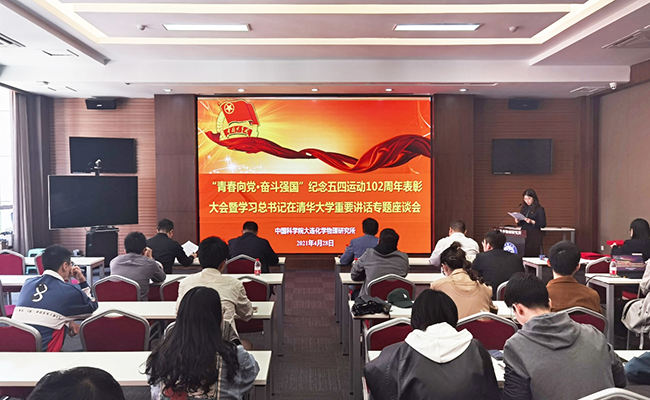4月28日下午,中國科學院大連化學物理研究所團委在能源基礎樓一樓會議室舉行“青春向黨 奮斗強國”紀念五四運動102周年表彰大會暨學習總書記在清華大學重要講話專題座談會。黨委副書記、紀委書記毛志遠,相關職能部門負責人,團委委員,各團支部成員參加此次會議。