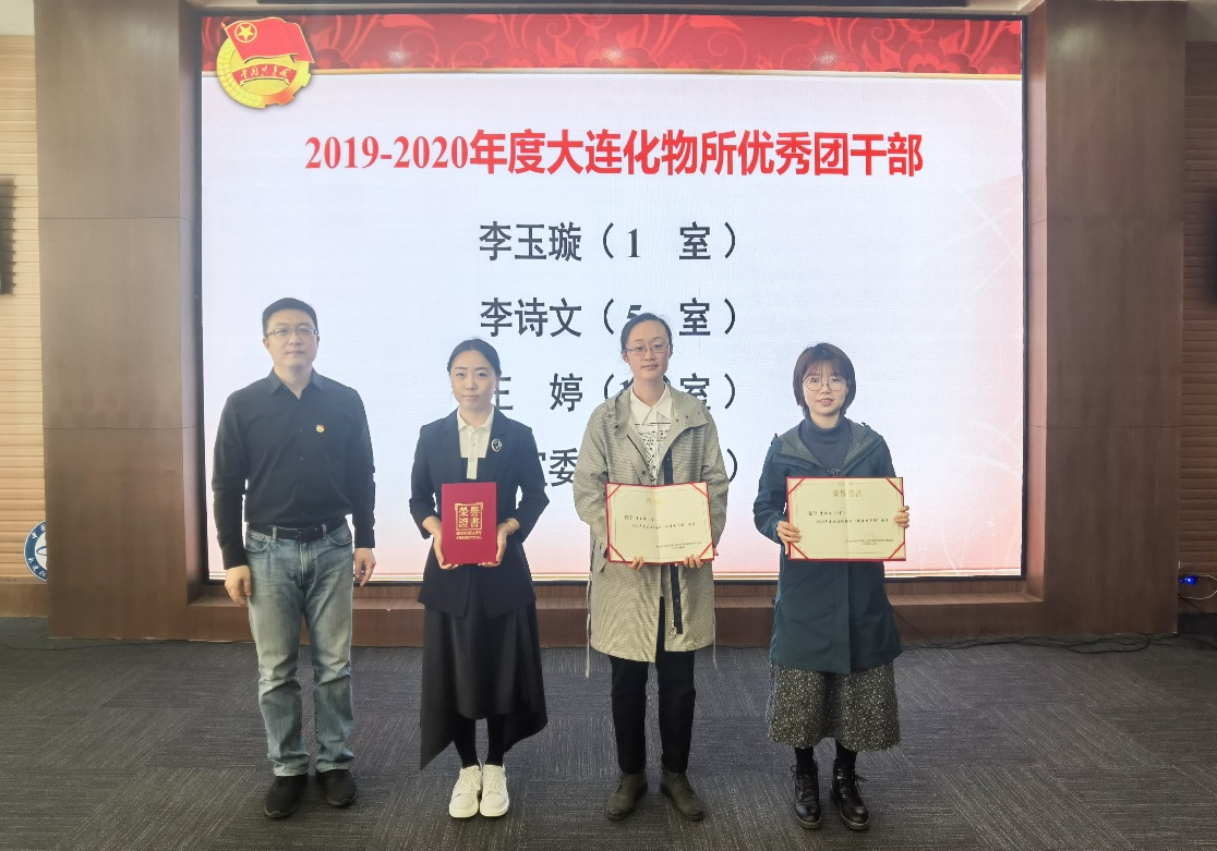 團委書記熊川男首先宣讀了“遼寧省青年五四獎章(集體)”、大連市青年五四獎章的獲獎名單和中科院、大連市、所內(nèi)“兩優(yōu)一先”的表彰名單。毛志遠、辦公室主任李振濤、黨委辦公室主任王書詔與熊川男分別為獲獎集體與個人頒發(fā)榮譽證書。