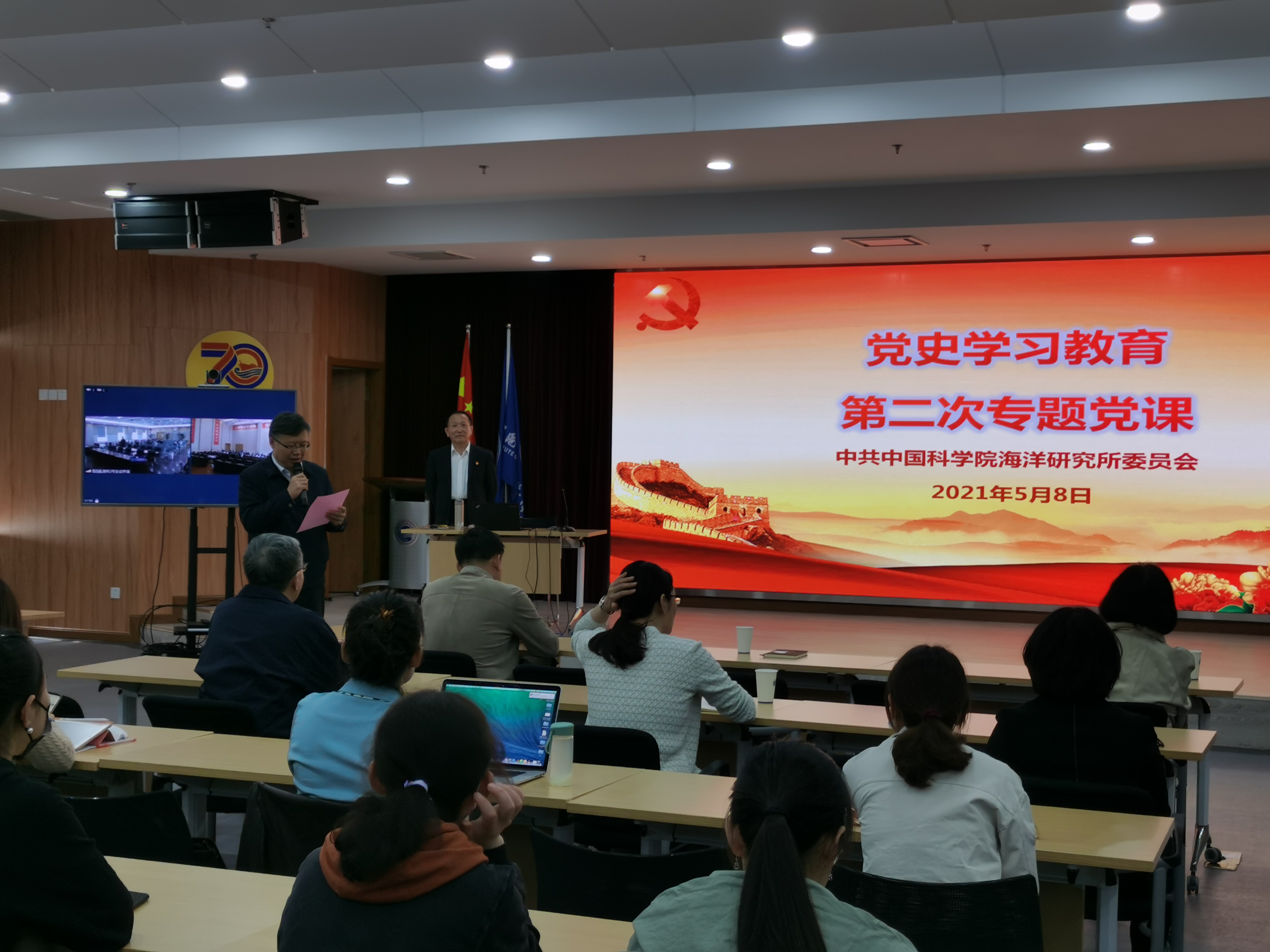 5月8日,海洋所黨委開展黨史學習教育專題黨課,所黨委委員、紀委委員、中層干部、黨支部書記及委員、團委委員、黨員發(fā)展對象及積極分子等100余人參加現(xiàn)場培訓,其他黨員及團員通過視頻參加培訓。培訓由黨委書記王輝主持。