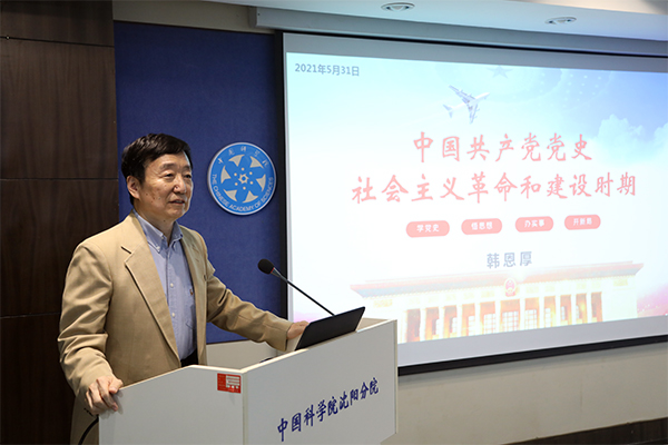 學(xué)習(xí)會上,韓恩厚作社會主義革命和建設(shè)時期黨史學(xué)習(xí)專題報告,通過歷史時間軸系統(tǒng)梳理了新中國成立、鞏固政權(quán)、過渡時期、社會主義探索、文革時期、真理大討論六個重要歷史時期,同時從歷史的角度分析了中國共產(chǎn)黨執(zhí)政帶來的啟示。韓恩厚在報告中強(qiáng)調(diào)了黨對科技事業(yè)領(lǐng)導(dǎo)的重視,結(jié)合社會主義革命和建設(shè)時期的黨史闡釋了科技事業(yè)在這一階段的發(fā)展。