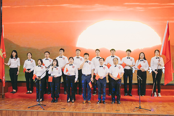 大會在全體黨員高聲合唱《沒有共產(chǎn)黨就沒有新中國》中圓滿落下帷幕。