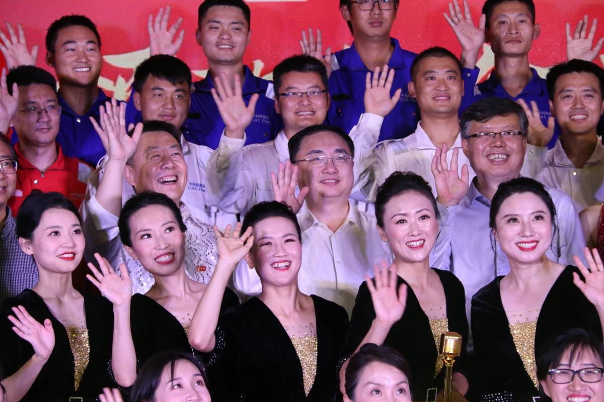 所領(lǐng)導(dǎo)跟演職人員合影