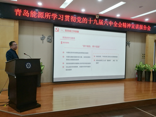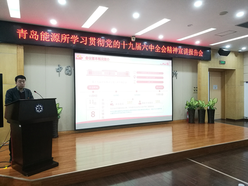12月16日上午,青島能源所召開學(xué)習(xí)貫徹黨的十九屆六中全會精神宣講報(bào)告會,研究所黨員、團(tuán)員、民主黨派及無黨派人士、副處級以上領(lǐng)導(dǎo)干部、研究員、研究組組長等220余人參加了會議。會議由紀(jì)委書記李明主持。