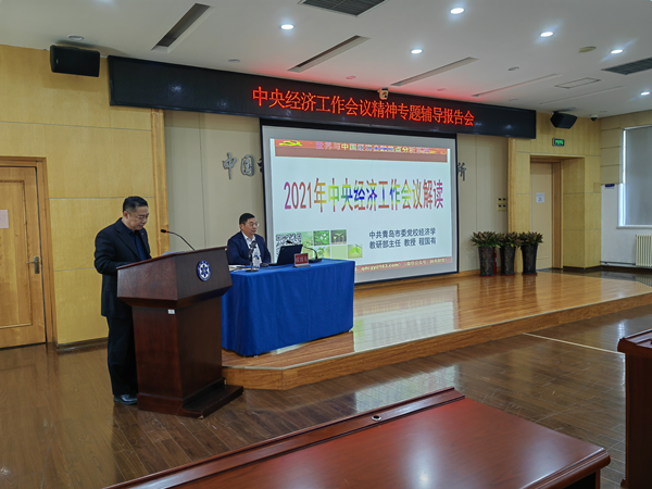 近日,青島能源所黨委召開理論學習中心組學習(擴大)會議,邀請中共青島市委黨校經(jīng)濟學教研部主任程國有教授作《2021年中央經(jīng)濟工作會議解讀》專題輔導(dǎo)報告。研究所黨委委員、中層干部、科研骨干參加了會議,會議由黨委副書記徐峰主持。