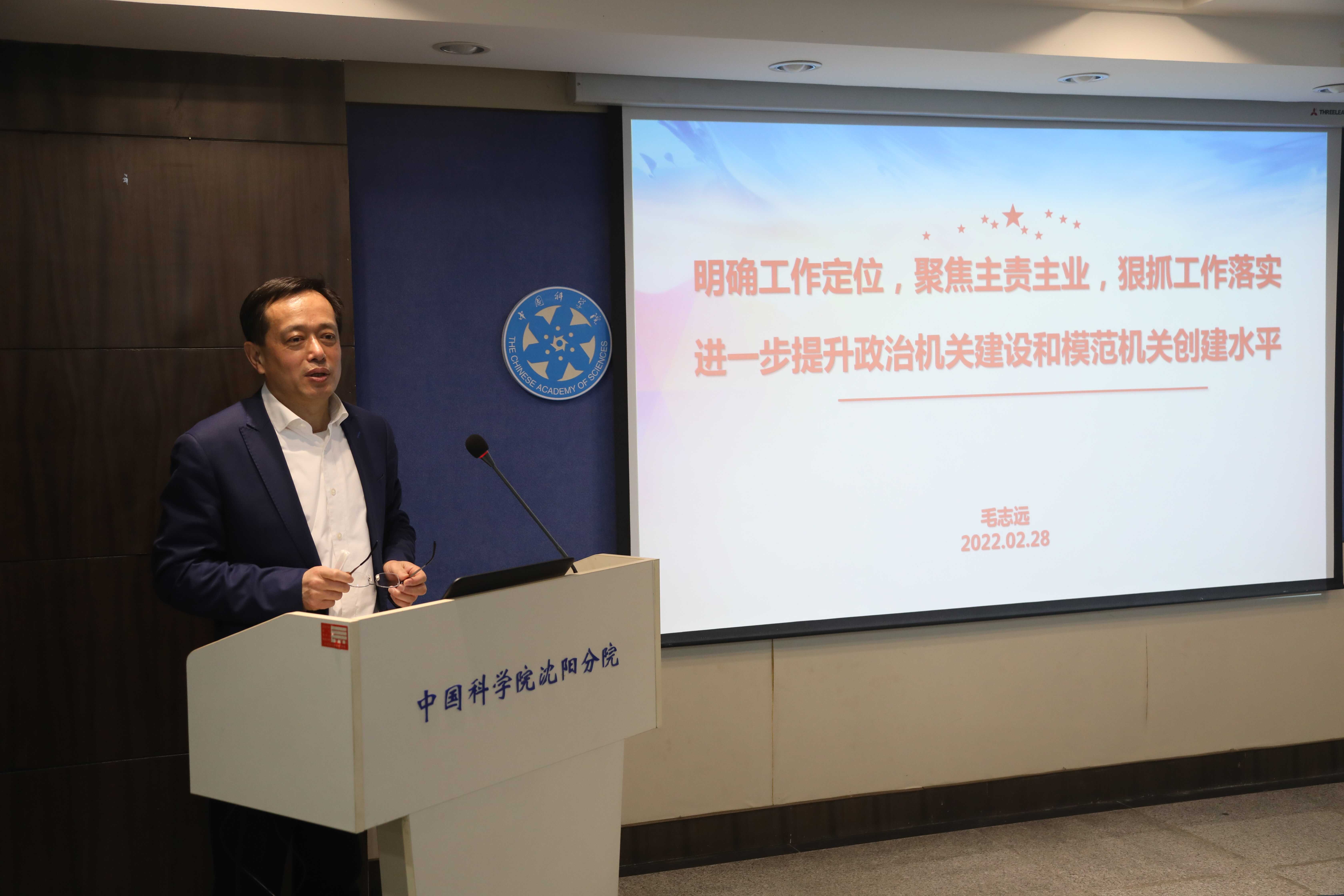 毛志遠(yuǎn)為機(jī)關(guān)全體作了題為《明確工作定位,聚焦主責(zé)主業(yè),狠抓工作落實(shí),進(jìn)一步提升政治機(jī)關(guān)建設(shè)和模范機(jī)關(guān)創(chuàng)建水平》專題報告。報告圍繞習(xí)近平總書記在歷次中青年干部培訓(xùn)班開班式上的重要講話精神、院黨組對院和分院機(jī)關(guān)建設(shè)作出的系列部署、加強(qiáng)分院機(jī)關(guān)建設(shè)等三個方面進(jìn)行詳細(xì)解讀,并對2022年度分院機(jī)關(guān)建設(shè)進(jìn)行了工作部署。