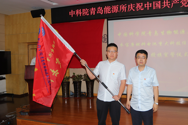 徐峰向大會(huì)宣讀了所黨委《關(guān)于成立衣寶廉燃料電池重大科技任務(wù)攻關(guān)突擊隊(duì)的通知》,彭輝向突擊隊(duì)授隊(duì)旗,突擊隊(duì)隊(duì)員面向黨旗、隊(duì)旗莊嚴(yán)宣誓,表達(dá)了為建設(shè)世界科技強(qiáng)國(guó)貢獻(xiàn)力量的信心和決心。