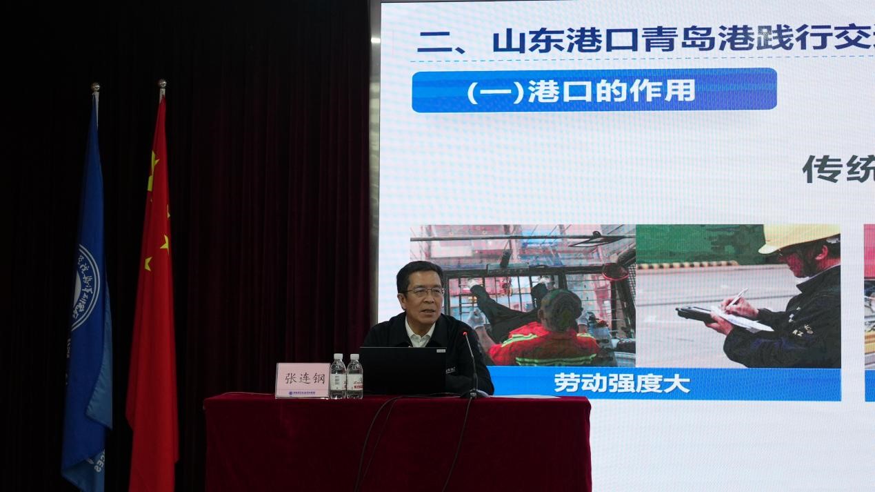 在海洋所培訓(xùn)期間邀請(qǐng)了中共二十大代表、“連鋼創(chuàng)新團(tuán)隊(duì)”負(fù)責(zé)人、山東省港口集團(tuán)有限公司高級(jí)別專家張連鋼同志做黨的二十大精神宣講報(bào)告。張連鋼結(jié)合自己參加二十大會(huì)議的體會(huì)以及“連鋼創(chuàng)新團(tuán)隊(duì)”建設(shè)亞洲首個(gè)全自動(dòng)化集裝箱碼頭的實(shí)踐與創(chuàng)新,從“深刻領(lǐng)會(huì)黨的二十大精神實(shí)質(zhì)、準(zhǔn)確把握重大理論和實(shí)踐問題”“中國式現(xiàn)代化在港口的具體實(shí)踐”“推進(jìn)中國式現(xiàn)代化必須要堅(jiān)定不移走好自主創(chuàng)新之路”三個(gè)方面對(duì)黨的二十大精神進(jìn)行了解讀。