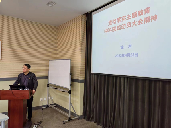 隨后,徐巖作了題為“貫徹落實(shí)主題教育中科院動(dòng)員大會(huì)精神”的主題報(bào)告。傳達(dá)了院主題教育動(dòng)員大會(huì)概況、工作部署情況,帶領(lǐng)大家共同學(xué)習(xí)了院主題教育實(shí)施方案,并就制定我所主題教育工作計(jì)劃和調(diào)研具體工作方案提出整體思路。他指出,處級(jí)以上人員要深入學(xué)習(xí)領(lǐng)會(huì)習(xí)近平總書記關(guān)于科技創(chuàng)新的重要論述和對我院的重要指示批示精神,緊密圍繞我院科技創(chuàng)新實(shí)際和職責(zé)定位,結(jié)合實(shí)現(xiàn)高水平科技自立自強(qiáng)的目標(biāo)要求,重點(diǎn)關(guān)注科技創(chuàng)新、體制機(jī)制改革和職工群眾急難愁盼等問題,結(jié)合所黨委前期調(diào)研成果,找準(zhǔn)深入調(diào)查研究的切入點(diǎn)、著力點(diǎn)和落腳點(diǎn),主動(dòng)認(rèn)領(lǐng)、扎實(shí)整改,著力解決理論學(xué)習(xí)、政治素質(zhì)、能力本領(lǐng)、擔(dān)當(dāng)作為、工作作風(fēng)、廉潔自律等6個(gè)方面的突出問題。