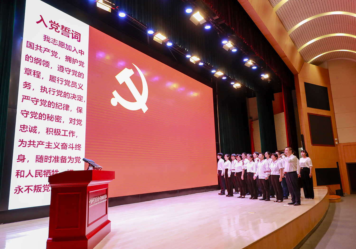 首先,大會進行新黨員入黨宣誓儀式,新加入黨組織的預(yù)備黨員在黨委委員王書詔的帶領(lǐng)下,面向黨旗,莊嚴宣誓。