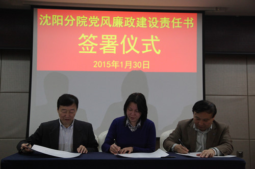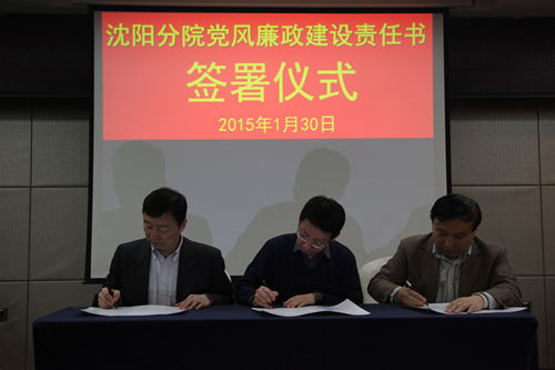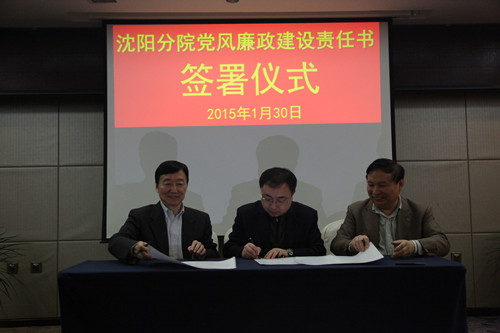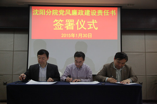 2015年1月30日,沈陽(yáng)分院組織與系統(tǒng)各研究所簽訂黨風(fēng)廉政建設(shè)責(zé)任書。受院黨組委托沈陽(yáng)分院院長(zhǎng)韓恩厚、黨組書記王啟堯與各研究所所長(zhǎng)、黨委書記分別簽訂了個(gè)性化反腐倡廉建設(shè)責(zé)任書、黨風(fēng)廉政建設(shè)責(zé)任書,同時(shí)與分院領(lǐng)導(dǎo)班子其他兩位成員也簽訂了個(gè)性化責(zé)任書。沈陽(yáng)分院黨組副書記、紀(jì)檢組長(zhǎng)徐巖主持責(zé)任書簽訂儀式。