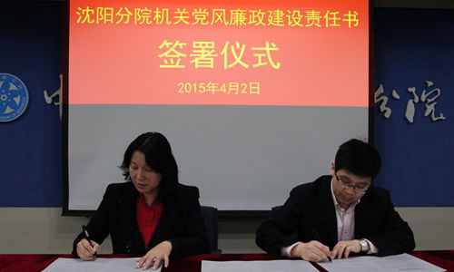 按照院黨組關(guān)于加強(qiáng)中科院黨風(fēng)廉政建設(shè)的總體部署,1月末沈陽分院已組織分院院長(zhǎng)、黨組書記與系統(tǒng)各研究所所長(zhǎng)、黨委書記分別簽訂了個(gè)性化反腐倡廉建設(shè)責(zé)任書、黨風(fēng)廉政建設(shè)責(zé)任書。此次,分院領(lǐng)導(dǎo)班子成員與機(jī)關(guān)各部門負(fù)責(zé)人簽訂黨風(fēng)廉政建設(shè)責(zé)任書,是按照沈陽分院黨風(fēng)廉政建設(shè)責(zé)任制實(shí)施細(xì)則的要求,扎實(shí)抓好“兩個(gè)責(zé)任”落實(shí)的又一具體措施。