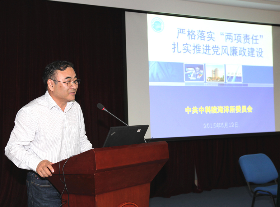 會(huì)議首先由楊紅生副書記代表黨紀(jì)委班子作了題為《嚴(yán)格落實(shí)“兩項(xiàng)責(zé)任”,扎實(shí)推進(jìn)黨風(fēng)廉政建設(shè)》的專題報(bào)告。報(bào)告全面?zhèn)鬟_(dá)了中央紀(jì)委駐中科院紀(jì)檢組組長李志剛在全院黨支部書記輪訓(xùn)會(huì)議上的廉政報(bào)告精神,系統(tǒng)回顧了海洋研究所2014年廉政工作,對(duì)2015年黨風(fēng)廉政工作進(jìn)行了部署。近年來,海洋所嚴(yán)格落實(shí)黨委和紀(jì)委“兩項(xiàng)責(zé)任”,結(jié)合中心工作,圍繞作風(fēng)建設(shè)長效機(jī)制和院巡視組反饋意見整改落實(shí),從強(qiáng)化制度落實(shí)入手,以風(fēng)險(xiǎn)防控為切入點(diǎn),重點(diǎn)加強(qiáng)懲防、內(nèi)控、隊(duì)伍、宣教和廉政文化五大體系建設(shè),取得了較好成效,全年無違法違規(guī)違紀(jì)案件發(fā)生,促進(jìn)了科研工作平穩(wěn)健康發(fā)展,