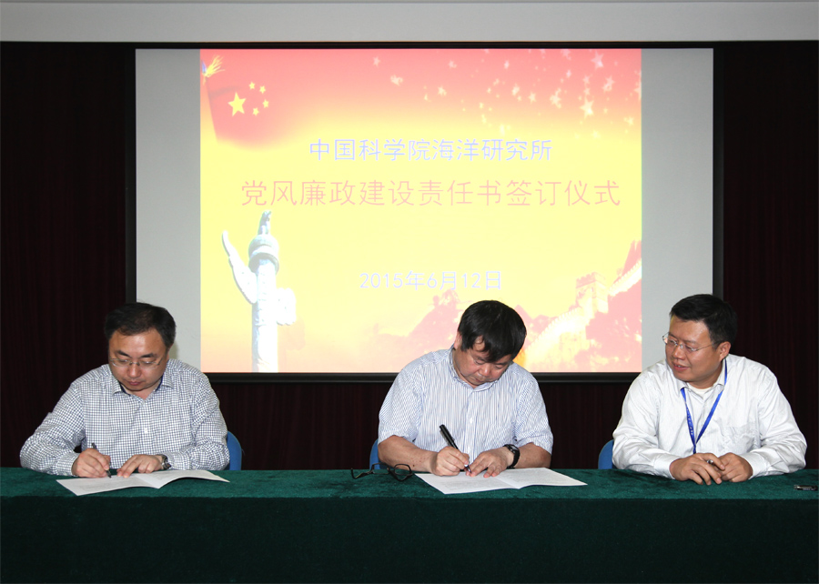 6月12日上午,海洋研究所舉行了黨風(fēng)廉政建設(shè)責(zé)任書簽訂儀式。所長孫松;黨委書記兼副所長王凡;副所長李鐵剛;黨委副書記、副所長兼紀(jì)委書記楊紅生;副所長王輝出席儀式。所長助理、黨委委員、紀(jì)委委員、研究室正副主任、管理和支撐體系負(fù)責(zé)人共50余人參加了簽字儀式。儀式由紀(jì)委書記楊紅生主持。