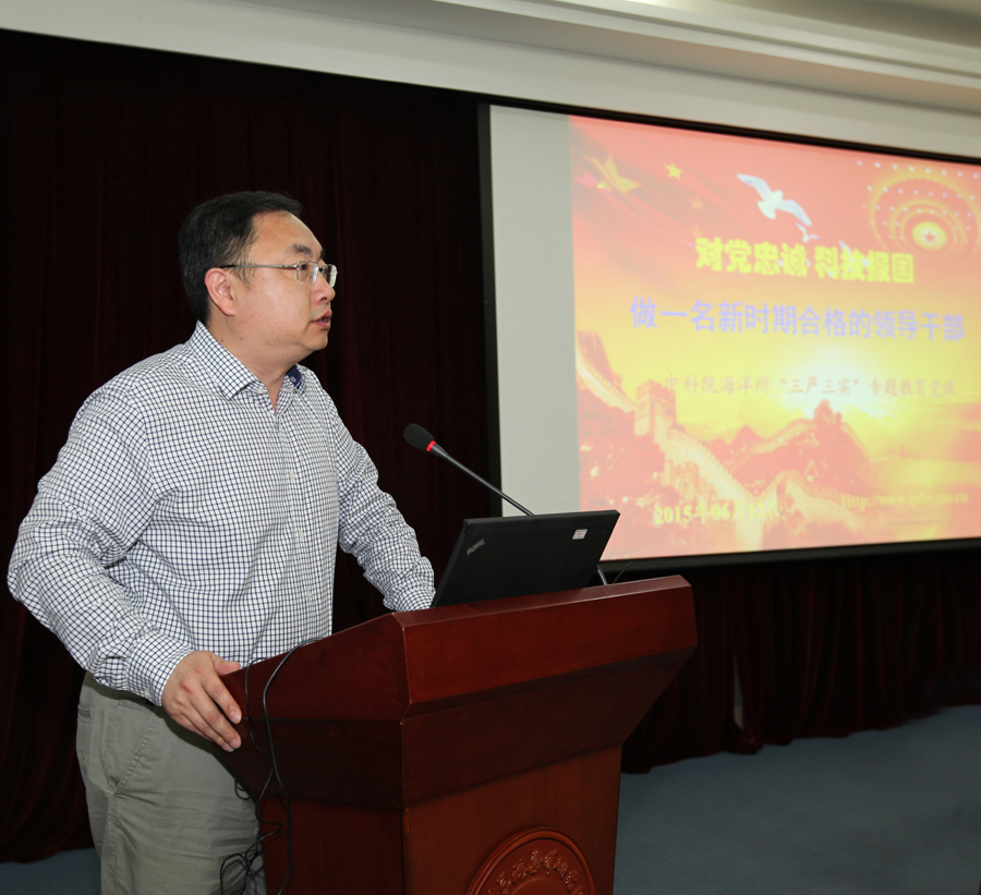 6月12日上午,海洋所召開處級(jí)以上領(lǐng)導(dǎo)干部大會(huì),黨委書記王凡為參會(huì)人員講“三嚴(yán)三實(shí)”專題黨課。黨政領(lǐng)導(dǎo)班子成員、紀(jì)委委員、副處以上領(lǐng)導(dǎo)干部、實(shí)驗(yàn)室正副主任、黨支部書記等近60人參加會(huì)議,會(huì)議由黨委副書記兼紀(jì)委書記楊紅生主持。