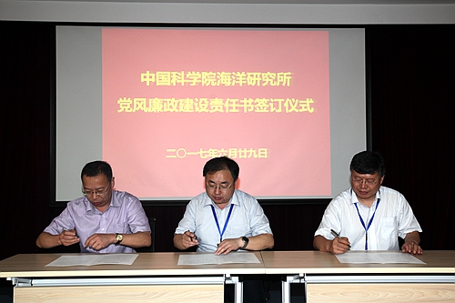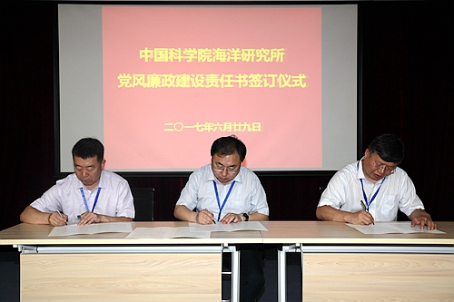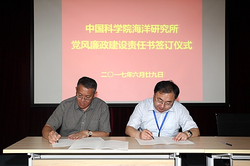 6月29日上午,在慶祝建黨96周年暨2016-2017年度黨建工作表彰會議上,海洋研究所舉行了黨風(fēng)廉政建設(shè)責(zé)任書簽訂儀式。所長王凡、黨委書記王輝、副所長李超倫、紀(jì)委書記畢偉出席簽訂儀式,科研、管理與支撐骨干人員等150余人參加儀式。儀式由副所長李超倫主持。