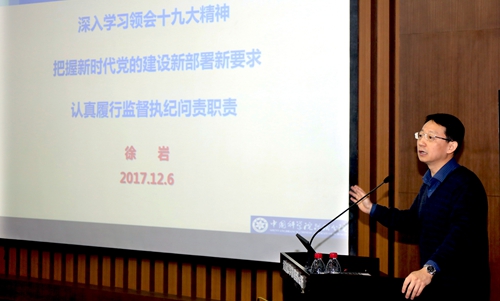 2017年12月6日,沈陽分院紀(jì)檢組在大連化物所召開會(huì)議組織系統(tǒng)紀(jì)監(jiān)審干部深入學(xué)習(xí)貫徹黨的十九大精神,沈陽分院系統(tǒng)各單位紀(jì)委書記、副書記、沈陽分院直屬單位紀(jì)委全體委員、各單位紀(jì)監(jiān)審干部及大連化物所部分紀(jì)委委員、黨支部書記、紀(jì)檢委員共33人參加學(xué)習(xí)。?