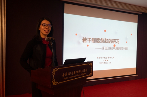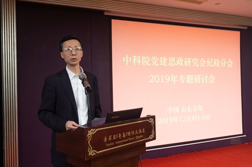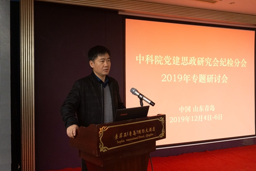 中科院黨建思政研究會紀檢分會2019年專題研討會在青島召開,院直屬機關(guān)紀委書記、院黨建與思政工作研究會紀檢分會副主任委員劉紅輝出席了會議,來自12個分院、合肥物質(zhì)科學研究院、中國科學院大學、京區(qū)企業(yè)以及部分研究所的紀檢組組長、紀委書記、紀委副書記、黨辦、監(jiān)審室等相關(guān)部門負責人和業(yè)務主管共計69人參加了會議。廣州分院分黨組書記、副院長、院黨建與思政工作研究會紀檢分會主任委員陳廣浩主持會議。