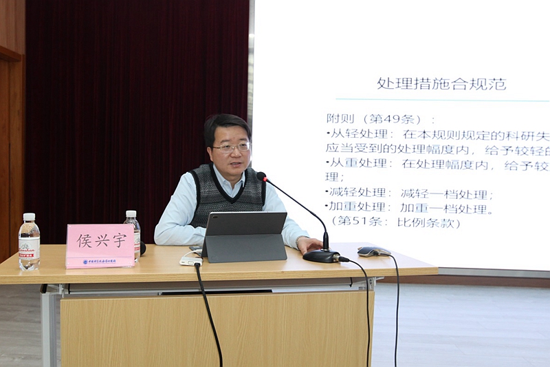 會議邀請院科研道德委員會辦公室侯興宇作“重塑學術監(jiān)督的權威”專題報告。報告通過對中外論文撤稿數(shù)據(jù)、科研不端行為案例等一系列數(shù)據(jù)的分析,闡明了目前科研誠信形勢的復雜和嚴峻,以及深入開展科研誠信建設的必要性和緊迫性,同時通過對國內(nèi)外學術失信的多起典型案例分析,詳細講解了科研失信的具體表現(xiàn)形式。報告對《關于進一步加強科研誠信建設的若干意見》、《科研誠信案件調(diào)查處理規(guī)則(試行)》等一系列規(guī)章制度進行了重點解讀,文件提出了推進科研誠信不是治外之地、推進科研誠信需要從細節(jié)抓起、懲處科研失信應該嚴字當頭的要求,文件明確了七類科研失信行為的定義,統(tǒng)一了調(diào)查處理的適用標準,不斷建立健全依據(jù)事實程序透明的學術監(jiān)督規(guī)則。