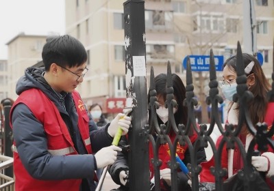 活動最后,大連化物所青年志愿者隊員攜帶著鏟刀、墻刷、噴壺等工具,對西山街道的電線桿、圍墻小廣告進行鏟除和清理,美化街道環(huán)境