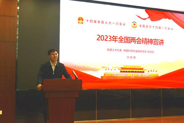 隨后,全國(guó)人大代表孫東明作“2023年全國(guó)兩會(huì)精神宣講”主題報(bào)告。他介紹了2023年全國(guó)人民代表大會(huì)的概況、習(xí)近平總書(shū)記在大會(huì)期間的重要講話精神、大會(huì)議程、代表團(tuán)活動(dòng)情況及個(gè)人履職情況。孫東明指出,作為科研一線的全國(guó)人大代表,是黨和國(guó)家給了自己榮譽(yù)和責(zé)任,他將一如既往認(rèn)真履職盡責(zé),在反映和推動(dòng)解決科研人員關(guān)心關(guān)注的問(wèn)題方面繼續(xù)發(fā)揮作用,不辜負(fù)全國(guó)人大代表的光榮使命,他號(hào)召全所青年在推動(dòng)高水平科技自立自強(qiáng)中貢獻(xiàn)青春力量。