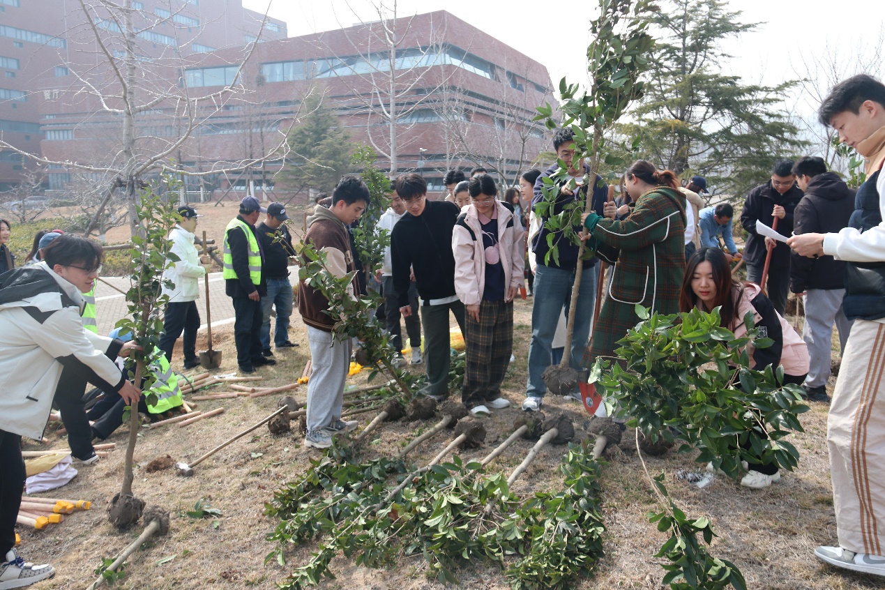 來自海洋學(xué)院16個(gè)班級(jí)的30余名志愿者參加了活動(dòng),在專業(yè)技術(shù)人員的指導(dǎo)下,志愿者們分成若干小組,分工協(xié)作,有的揮鍬鏟土,有的扶苗培土,有的圍堰踩實(shí),每道工序緊密銜接、配合默契,在這春意盎然的日子里,青年的朝氣與樹苗的生機(jī)相互輝映,共同繪就了一幅動(dòng)人的畫卷。