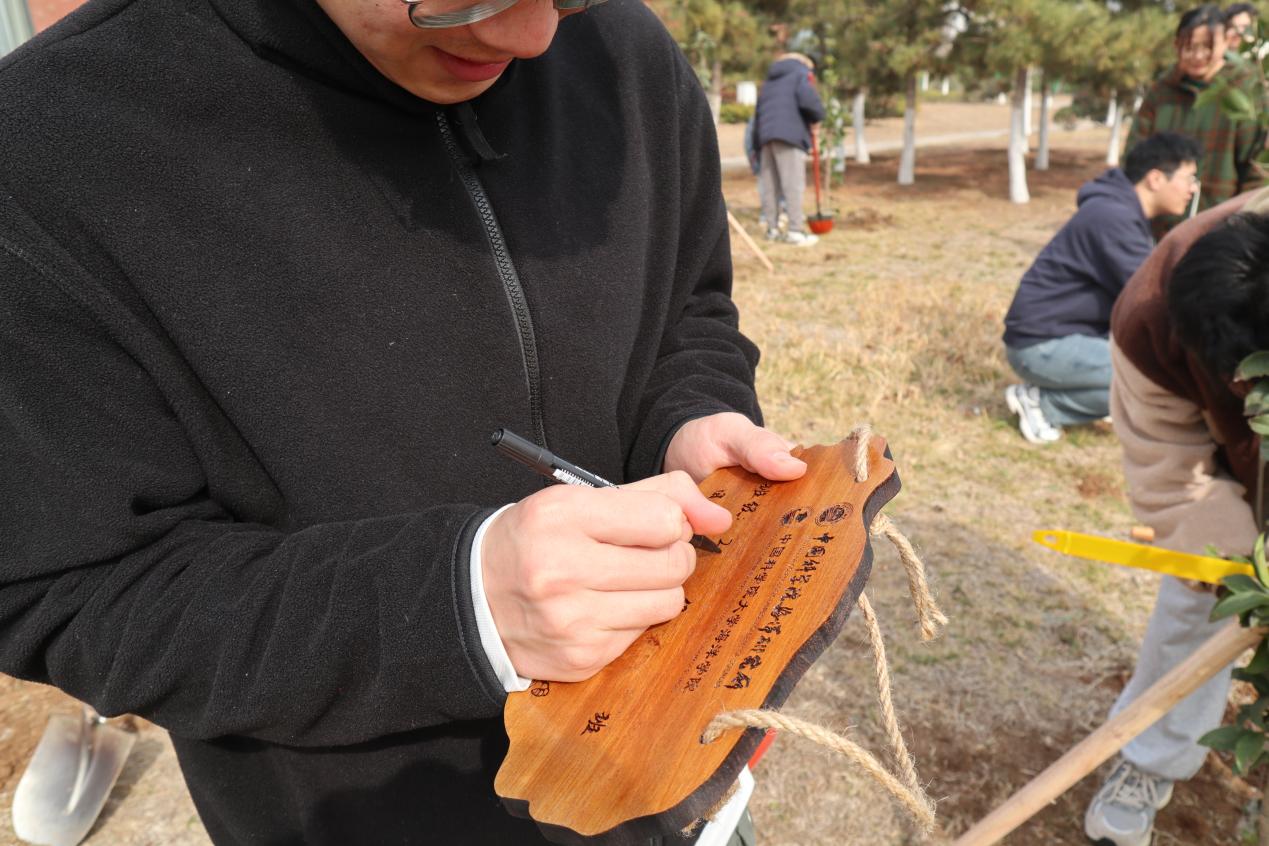 經(jīng)過大家的辛勤勞動(dòng),代表著16個(gè)班級(jí)的16棵金桂樹苗被成功栽種,志愿者們親手書寫并懸掛班級(jí)銘牌,把綠色希望和志愿精神厚植在了這片校園的沃土上。