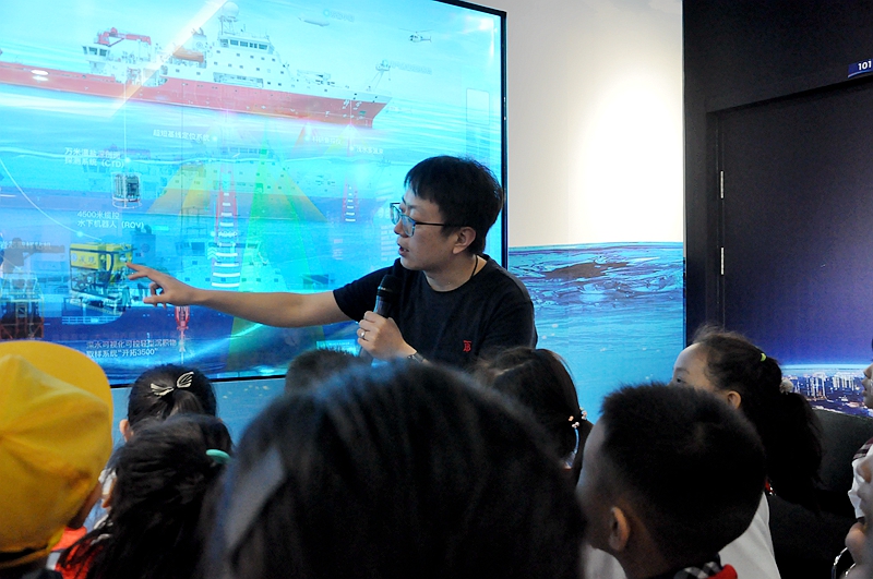在海洋人工智能與大數(shù)據(jù)中心,科研人員用深入淺出的講解語(yǔ)言,使用多媒體的形式向同學(xué)們介紹了海洋人工智能與大數(shù)據(jù)在海洋科學(xué)研究中的應(yīng)用,展示了“發(fā)現(xiàn)”號(hào)ROV在深??瓶紩r(shí)拍攝的高清視頻,激發(fā)了同學(xué)們對(duì)海洋學(xué)習(xí)的強(qiáng)烈興趣。