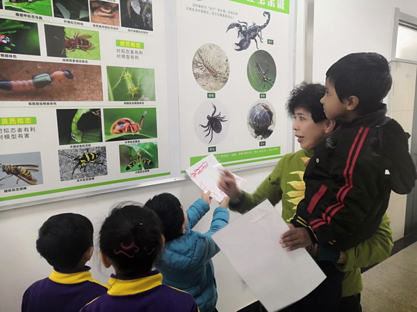 在“科普展覽”環(huán)節(jié)中,通過對東北生物標(biāo)本館的參觀,讓孩子們親身接觸和了解昆蟲和植物的生長變化,了解了由花至果的生長變化是如何發(fā)生的。
