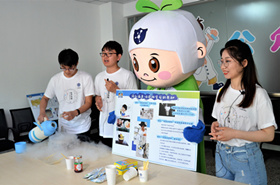 在云游青能所環(huán)節(jié),科研人員認(rèn)真準(zhǔn)備了各類科學(xué)實(shí)驗(yàn),內(nèi)容涉及生物、化學(xué)化工、材料等科學(xué)知識(shí)。研究所公眾科學(xué)日吉祥物“清清”也在本次活動(dòng)中首次亮相,公眾在“清清”帶領(lǐng)下探秘實(shí)驗(yàn)室,包括小小鋰電池潛力無限大,瓶中彩虹,蛋白質(zhì)的變形記,網(wǎng)紅“液氮冰淇淋”背后的奧秘,金谷棒勇闖火焰山、八卦爐內(nèi)煉烏丹,小小“魔術(shù)藻”的“跨界”傳奇,“高個(gè)子”和“矮胖子”??蒲腥藛T通過實(shí)驗(yàn)展示和原理解讀將科學(xué)知識(shí)傳遞給公眾,直觀形象、生動(dòng)有趣。