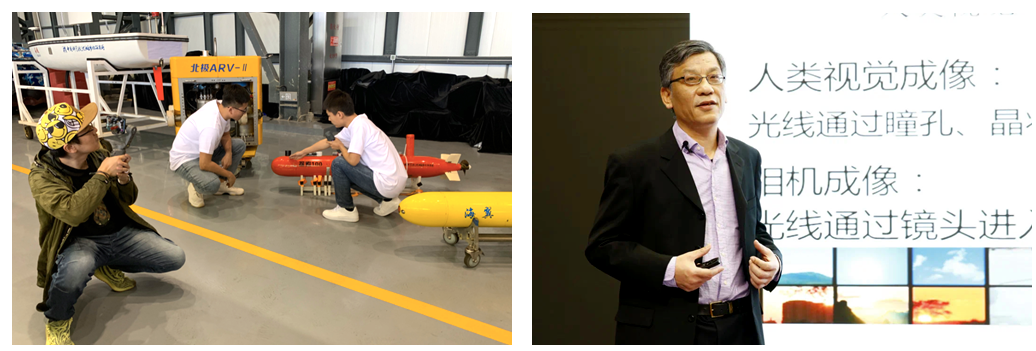 依托于沈陽自動化所的機器人學(xué)國家重點實驗室通過網(wǎng)絡(luò)直播的方式面向受眾敞開大門。在23日上午的直播活動中,觀眾們了解了機器人學(xué)國家重點實驗室的發(fā)展歷程,觀看了“靈豹”便攜式快速組合排爆機器人、室內(nèi)巡邏機器人和兩款應(yīng)用于地震救援的搜救機器人演示,并在主播的帶領(lǐng)下走進(jìn)納米實驗室,參觀與聆聽了在微納操控與類生命機器人方面開展的科研工作。在下午的直播活動中,“勇士”號無人水面艇、“海鷗”號帆船、北極ARV、探索100AUV,“海翼”水下滑翔機、“潛龍一號”和“潛龍二號”AUV、“龍珠”號ROV、“海斗”號水下機器人列隊亮相,研發(fā)者們通過鏡頭向觀眾進(jìn)行了介紹與分享。為更好滿足需求,研究所科技成果展館VR展廳于24日上線啟用。在“科學(xué)公開課”環(huán)節(jié),機器人學(xué)研究室唐延?xùn)|研究員在題為《光、成像、圖像處理》的報告中介紹了光和成像的基本原理,和復(fù)雜光照及壞天氣下圖像處理的應(yīng)用; 數(shù)字工廠研究室周曉鋒副研究員在題為《萬物皆算法》的報告中分享了算法的“前世今生”,以及在圖像識別、自動駕駛、機器博弈等方面的應(yīng)用。在“科技影音廳”環(huán)節(jié),在研究所微信公眾號發(fā)布了《中國機器人之父——蔣新松》和《馴“龍”高手——劉開周》兩部弘揚科學(xué)家創(chuàng)新、拼搏與奮斗精神的影片 。