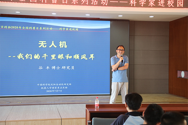 本次活動(dòng)邀請(qǐng)到中科院沈陽(yáng)自動(dòng)化所研究員谷豐,為同學(xué)們帶來(lái)主題為“無(wú)人機(jī)——我們的千里眼和順風(fēng)耳”的科普?qǐng)?bào)告。谷豐分別從什么是無(wú)人機(jī)、無(wú)人機(jī)的發(fā)展歷史、無(wú)人機(jī)能做什么以及無(wú)人機(jī)的未來(lái)四方面為同學(xué)們進(jìn)行了生動(dòng)形象的講解。他利用自己在科研一線(xiàn)工作中積累的豐富知識(shí),以淺顯通俗的語(yǔ)言和生動(dòng)形象的圖片、視頻、動(dòng)畫(huà)等,深入淺出地為青少年講述無(wú)人機(jī)的科學(xué)知識(shí)、技術(shù)成果和未來(lái)發(fā)展趨勢(shì),開(kāi)闊了同學(xué)們的視野,提高了科學(xué)素養(yǎng),激發(fā)了探索無(wú)人機(jī)的濃厚興趣。