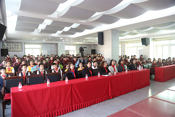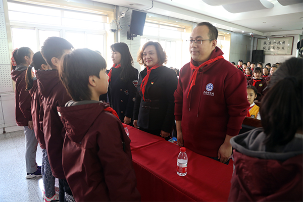 學(xué)生代表為劉洪陽(yáng)佩戴紅領(lǐng)巾