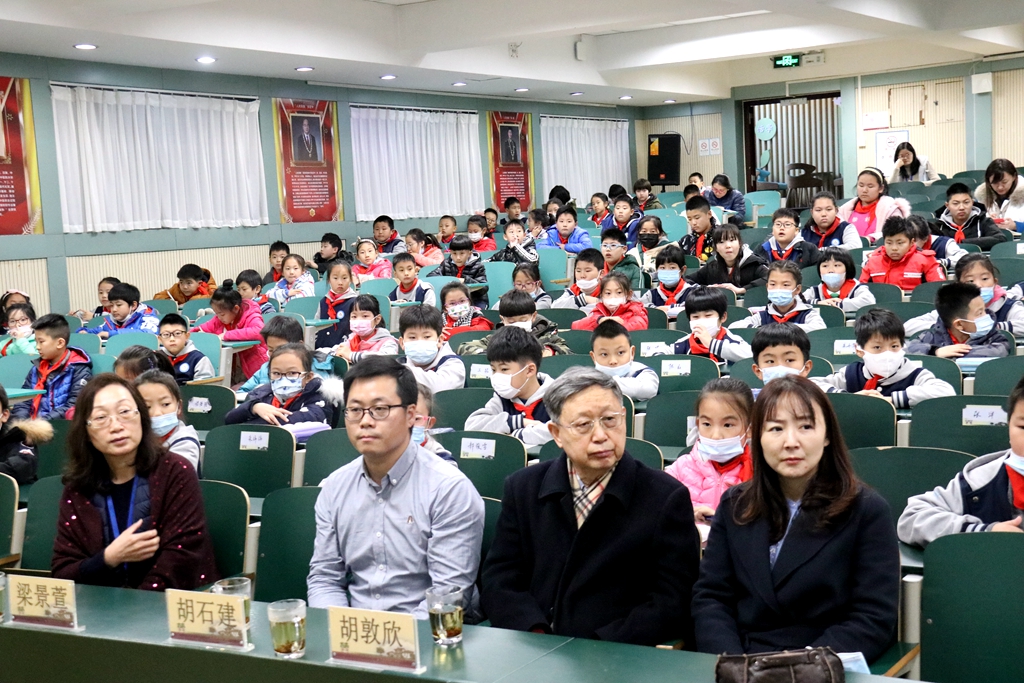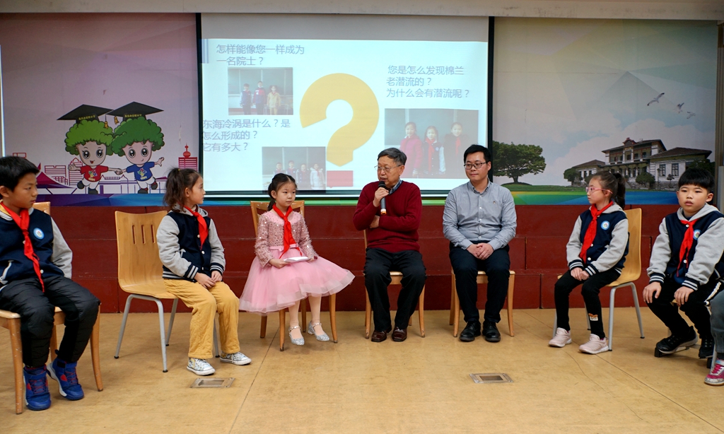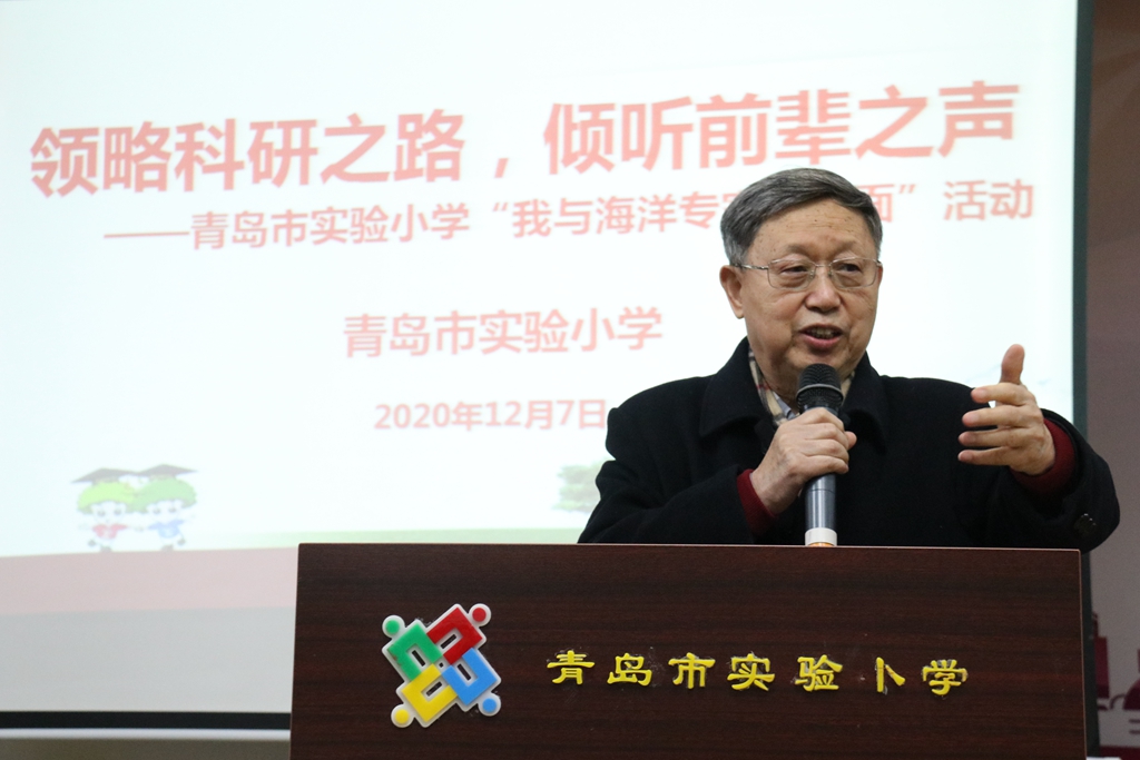 12月7日,海洋所胡敦欣院士、海洋所青促會(huì)會(huì)長(zhǎng)胡石建研究員應(yīng)邀赴青島市實(shí)驗(yàn)小學(xué)開(kāi)展海洋科普活動(dòng),市實(shí)驗(yàn)小學(xué)校長(zhǎng)梁景萱、副校長(zhǎng)胡繁華及百余名師生現(xiàn)場(chǎng)參與活動(dòng)。