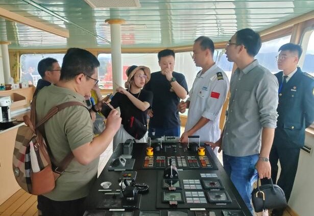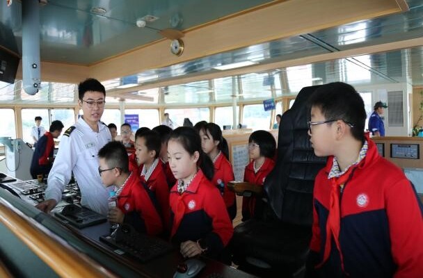 中小學(xué)生參觀“科學(xué)”號(hào)駕駛臺(tái)