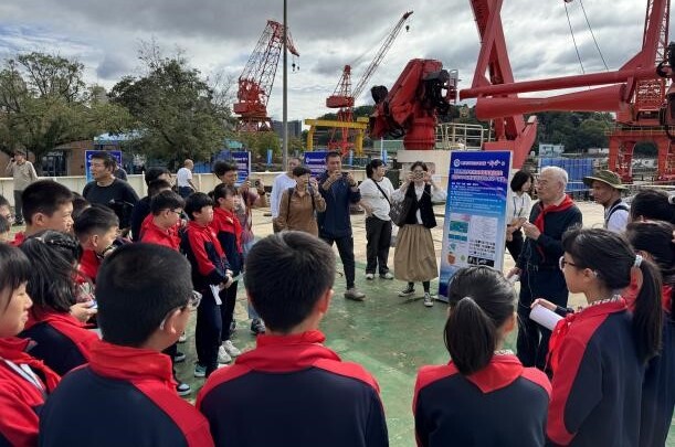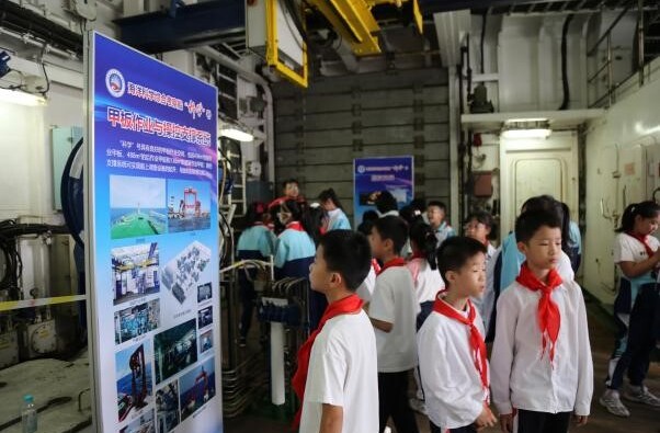 中小學(xué)生和市民參觀“科學(xué)”號(hào)后甲板作業(yè)區(qū)