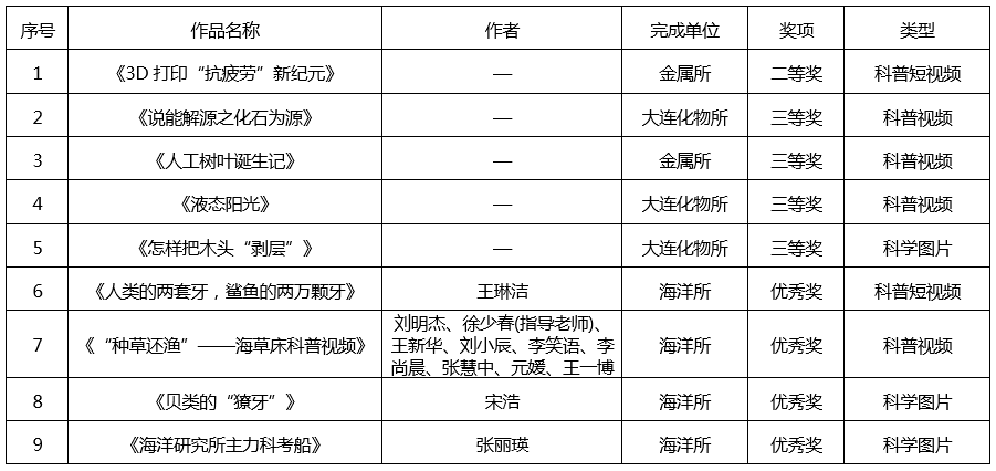 2024年中國(guó)科學(xué)院科普視頻圖片大賽沈陽(yáng)分院系統(tǒng)獲獎(jiǎng)名單