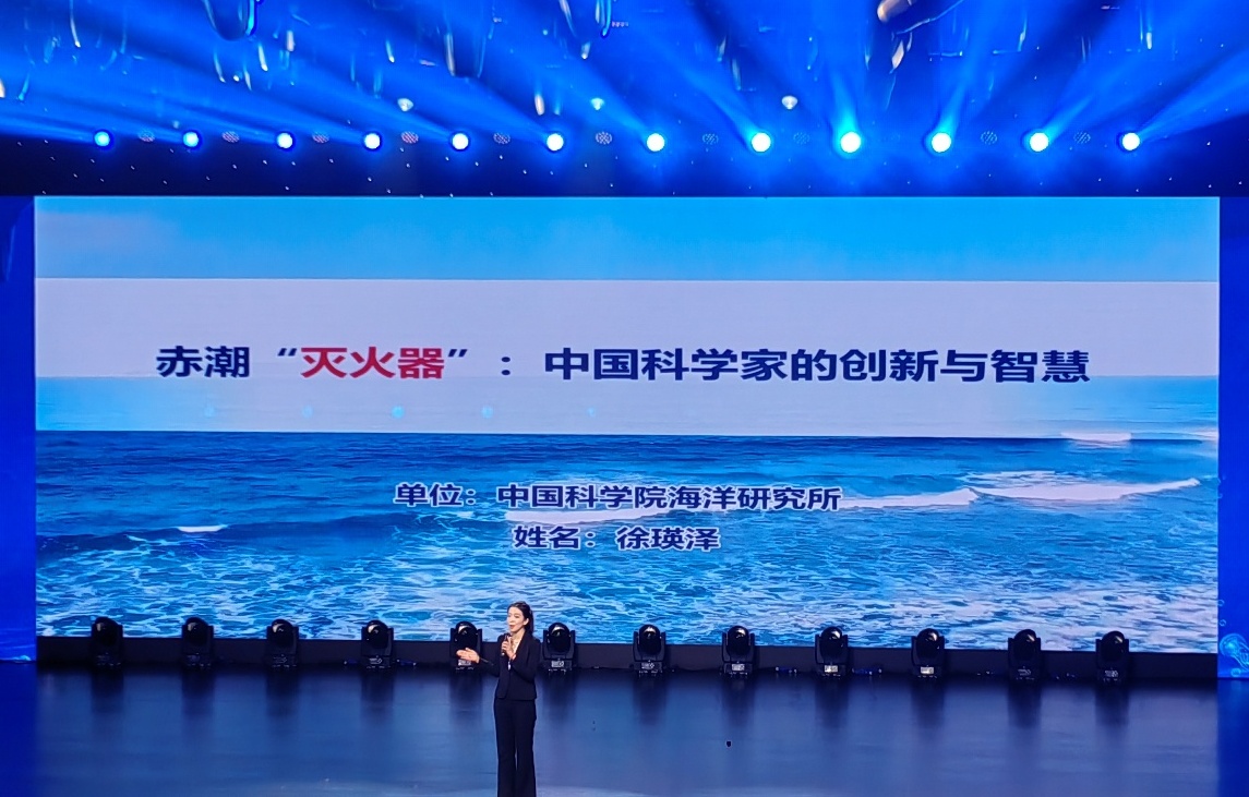 徐瑛澤以“赤潮‘滅火器’”為主題,講述了赤潮帶來的危害和影響,國際上治理赤潮的難點(diǎn)和技術(shù)瓶頸,介紹了我國科學(xué)家發(fā)明改性粘土治理赤潮技術(shù)的原理和成效,以及該技術(shù)在國內(nèi)外的應(yīng)用情況,產(chǎn)生了顯著的社會效益和經(jīng)濟(jì)效益,為全球赤潮治理提供中國方案,體現(xiàn)了中國科學(xué)家的創(chuàng)新和數(shù)十年磨一劍的堅(jiān)守,是中國科技的驕傲。