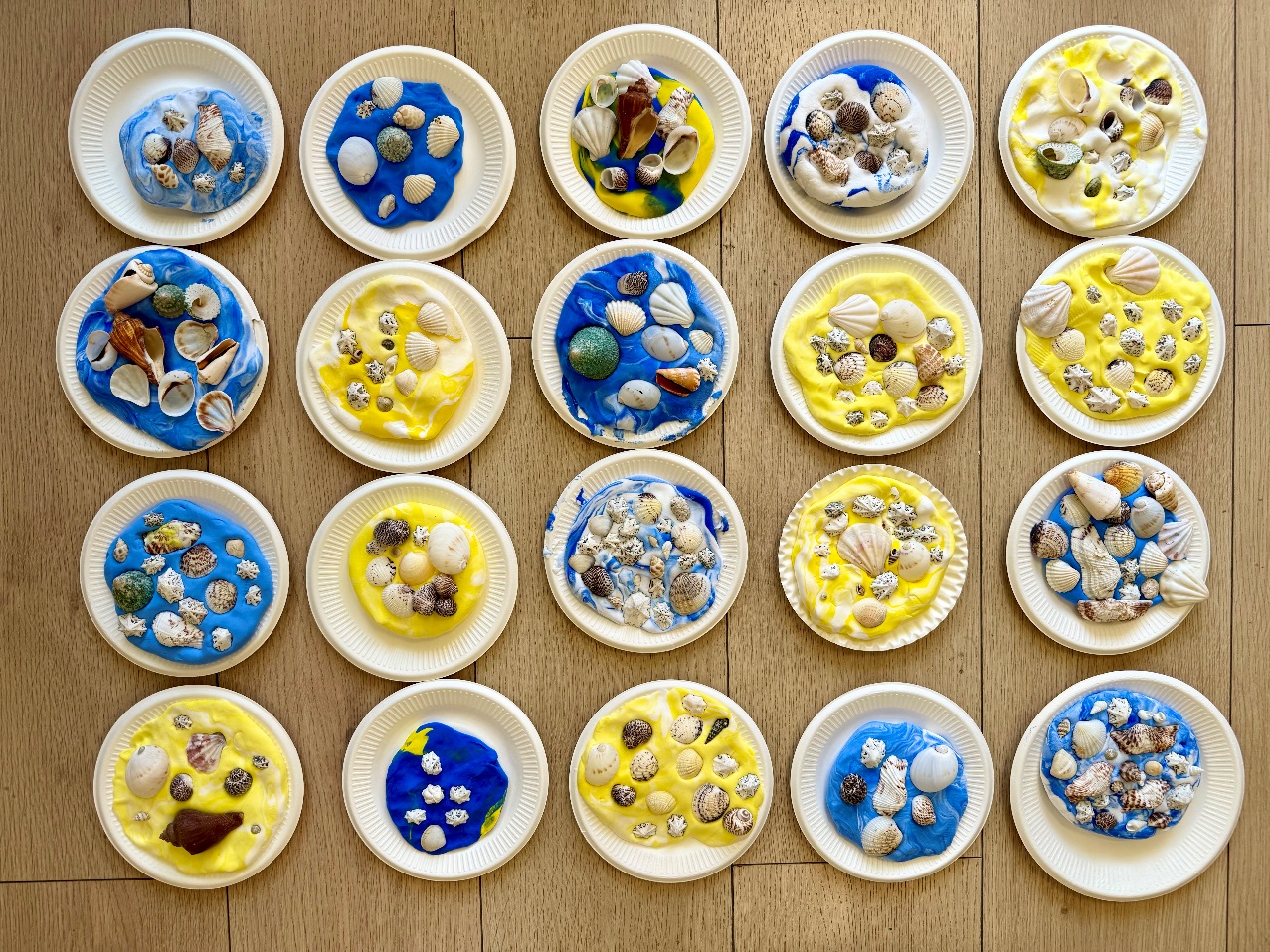 講解之后,王琳潔老師為孩子們準(zhǔn)備了精美的海洋動物貼紙,指導(dǎo)孩子們用各式各樣的海洋貝殼和粘土制作“我心中的海洋”貝殼工藝品。通過手工制作,孩子們進(jìn)一步加深了知識的理解,培養(yǎng)了獨(dú)立思考、積極動手的好習(xí)慣。