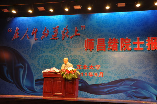 為推動(dòng)沈陽(yáng)分院與東北大學(xué)的科教合作,2011年9月21日,由沈陽(yáng)分院和東北大學(xué)聯(lián)合舉辦的師昌緒院士報(bào)告會(huì)在東北大學(xué)漢卿會(huì)堂舉行。東北大學(xué)黨委書記孫家學(xué)、沈陽(yáng)分院院士聯(lián)絡(luò)處負(fù)責(zé)人、部分老教授以及材冶學(xué)院的教師和學(xué)生共計(jì)500多人參加了報(bào)告會(huì)。報(bào)告會(huì)由孫家學(xué)書記主持。
