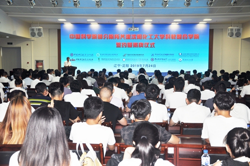 7月24日上午,沈陽分院與沈陽化工大學(xué)共建科教融合學(xué)院簽約暨揭牌儀式在沈陽化工大學(xué)舉行。遼寧省政府教育督導(dǎo)室主任王燕玲,遼寧省科技廳副廳長杜秉海,沈陽市科技局副局長馬忠勝,中科院沈陽分院分黨組書記、副院長姬蘭柱,中科院沈陽應(yīng)用生態(tài)研究所黨委書記、副所長金昌杰,中科院沈陽自動化研究所黨委書記、副所長桑子剛,中科院沈陽計算技術(shù)研究所所長馬躍,中科院金屬研究所黨委副書記、紀(jì)委書記謝光鋒,中科院過程工程研究所黨委副書記、紀(jì)委書記曹紅梅,中科院前沿學(xué)科與教育局教育處研究員郭大軍,中科院大學(xué)化學(xué)工程學(xué)院副院長李增喜以及沈陽化工大學(xué)全體校領(lǐng)導(dǎo)及中層干部出席了儀式。