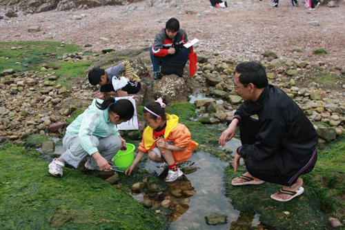 同學們個個興致勃勃,歡快地搜尋著不同種類的海藻,并不時地向王老師詢問自己所采標本是否完整以及名稱,每一次采到新種,同學們歡呼雀躍,慶祝自己的收獲。1個小時的時間很快就過去了,因漲潮,同學們不得不停止了采集工作,戀戀不舍離開海邊。