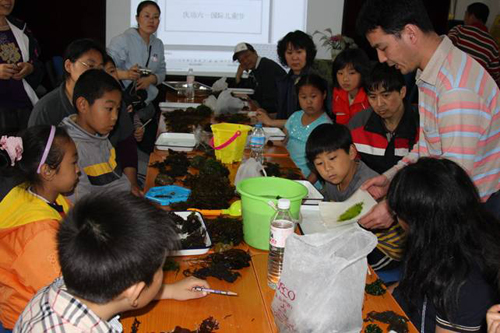 在八大關社區(qū)活動中心,同學們圍坐桌旁,認真地將自己所采標本進行分類,然后根據(jù)海藻標本制作規(guī)程進行標本的制作??粗约翰蓙順吮?,經(jīng)過親自動手制作,變成一幅幅得意之作,同學們的興奮、激動溢于言表。經(jīng)過2個多小時的緊張而有序的工作,同學們共制作標本100余號,一周以后,標本完全干后,將制成書簽,并將自己所制標本裝入鏡框作為作品擺放于家中,另外還將選出部分標本制成展板在社區(qū)、學校展出。