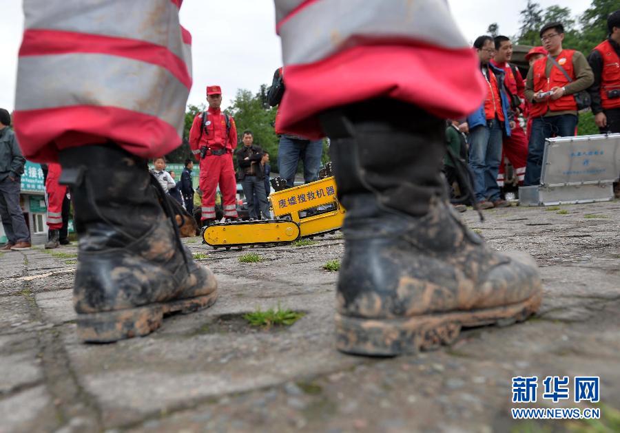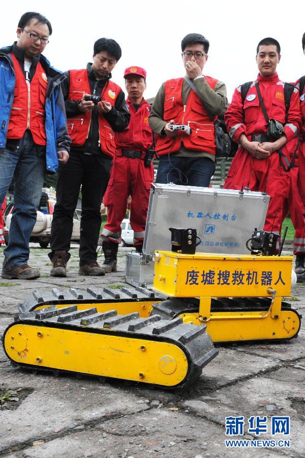 此次蘆山地震搜救工作中,由中科院沈陽自動化研究所研制的可變形搜救機器人第一時間送抵災(zāi)區(qū),協(xié)助中國地震應(yīng)急搜救中心對災(zāi)情進(jìn)行判斷和評估,實地應(yīng)用于廢墟搜索任務(wù),具有地形適應(yīng)性強、突破效率高、輕便靈活等特點。新華社記者 李紫恒攝