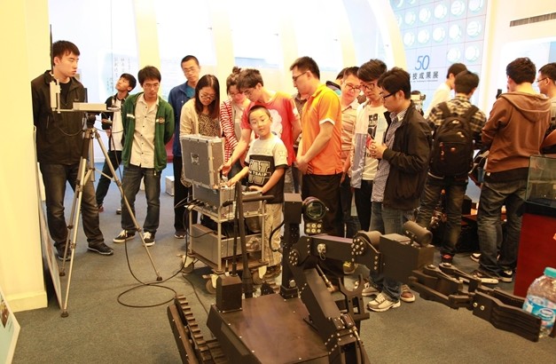 中科院沈陽自動化所展出了水下滑翔機(jī)、極地機(jī)器人、無人旋翼直升機(jī)機(jī)器人、蛇形機(jī)器人、反恐排爆機(jī)器人、廢墟搜救機(jī)器人、月球車等眾多的機(jī)器人實物,既安排了研究生志愿者講解機(jī)器人用途和工作原理,又安排了現(xiàn)場演示,觀眾還可以動手參與體驗操作機(jī)器人工作,讓參觀的市民大呼過癮。