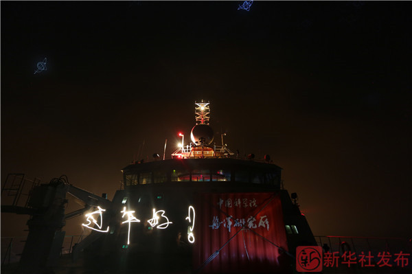 ↑這是隨“科學(xué)”號科考船執(zhí)行任務(wù)的隊員羅青在前甲板的光影涂鴉(2月17日攝)。