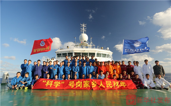 至今,“科學(xué)”號駛離祖國已超過80天,航程已逾兩萬公里,相當(dāng)于沿赤道環(huán)繞了半個地球,克服了氣象、裝備等諸多困難,戰(zhàn)風(fēng)斗浪、披星戴月,使命在肩、苦中有樂。